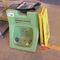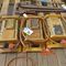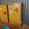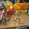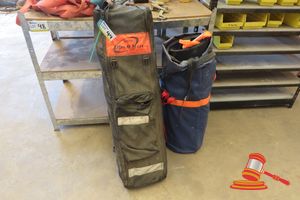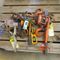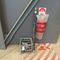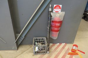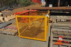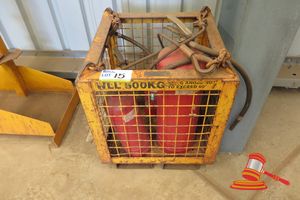 YELLOW LIFTING CAGE WITH WIRE SLINGS, ASSORTED FIRE EXTINGUISHERS
