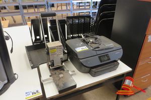 1 X HP 574 MULTI FUNCTION PRINTER, 1 X CARL HEAVY DUTY PUNCH AND ASSORTED FILE HOLDERS