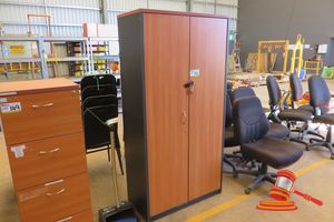 2 DOOR TIMBER STORAGE CUPBOARD - DAMAGED LOCK (APPROX 1.8M X 900MM X 450MM)