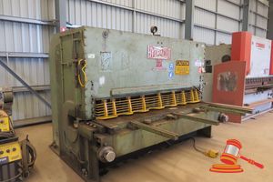 HYDRACUT VARIABLE RAKE GUILLOTINE, MAX CUT 8 FEET, MAX RAKE 3/8 INCH, MILD STEEL, FOOT OPERATED, SERIAL NO: 1081 (3 PHASE) (APPROX DIMENSIONS 3M X 3M X 2.4M) (PURCHASER RESPONSIBLE FOR LOADING AND REMOVAL)