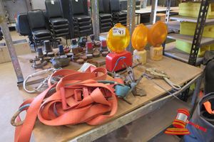 QTY OF ASSORTED STRAPPING EQUIPMENT INCLUDING: CRIMPERS, RATCHETS AND STRAPPING