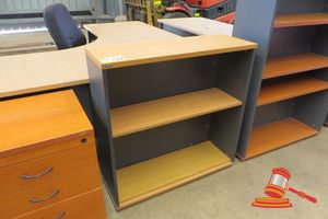 4- TIER TIMBER BOOK CASE (APPROX 1.8M X 900MM X 300MM) WITH LOCKABLE KEY CABINET
