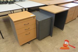 1 X TIMBER, 1 X METAL 3 DRAWER PEDISTOOL, 1 X TIMBER RETURN