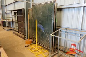 QTY OF ASSORTED WELDING SCREENS AND CABLE STAND