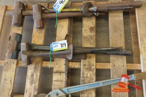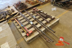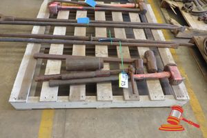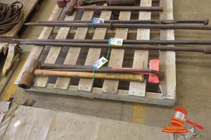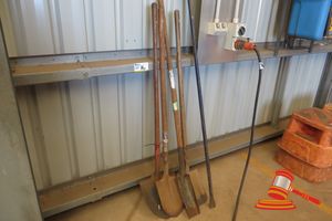 QTY ASSORTED HAND TOOLS INCLUDING: 4 X SHOVELS, 1 X FENCE CROW BAR