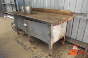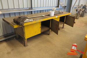 1 X HEAVY DUTY STEEL 2 DOOR WORK BENCH (2.4M X 900MM)