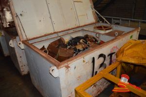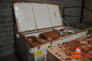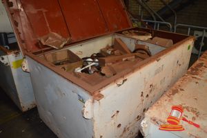1 x STEEL STORAGE BOX OF WATER TRACK SERVICE PARTS INCLUDING HYDRAULIC MOTORS/ DRIVESVARIOUS VALVES, AIR FILTERS, GASKETS, HOSES, PUMPS & AIR EXTRACTOR FAN (B#2771696) (FX#03296236)