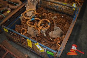 METAL CRATE OF VARIED CHAIN ASSEMBLY'S INCLUDING 13 TO 22mm CHAIN AND FITTINGS AS WELL AS LARGE OBLONGS (YD5B-28) (DA#095208) (B#3138019)