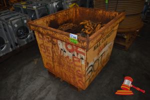 METAL CRATE OF VARIED CHAIN ASSEMBLYS INCLUDING 8, 16, AND 22mm CHAIN AND GRAB EYE HOOKS, OBLONGS, HAMERLOCKS AND LATCH LOCKS (YD5B-27) (DA#095208) (B#3138019)