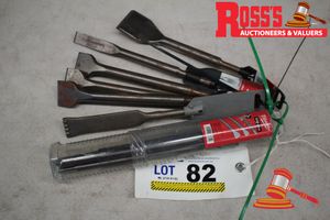 TRIPOD LIGHTING, HAMMER DRILLS, GRINDERS, PIPE CUTTER, DRILLS, RECIP SAW, MASONARY DRILL BITS, IMPACT DRILLS, ANGLE GRINDERS, CUT OFF SAWS, MOBILE MULTI COMPARTMENT TOOL CHEST WITH TOOL BOX ON TOP