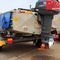 SKIPPERS SEAT, FUEL TANK, FRONT SPLASH GUARD, BLUE INFLATABLE PONTOONS EITHER SIDE, WOODEN CARPETED DECK (W10160)