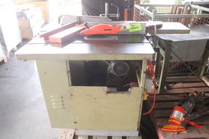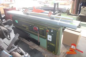 PANEL SAW SAMCO, 3 PHASE WITH PLUG, COLOUR DARK GREEN, WEAR AND TEAR WITH AGE, APPROX 1200mm, BLADE DIAMETER, APPROX 220mm, SERIAL#060585