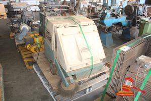 INDUSTRIAL FLOOR SWEEPER, MAKE: TENNANT, MODEL: 186, SERIAL: 186-9478, ADVISED CIRCA: 1980s, GAS POWERED, WITH SPARE BOTTLE, CONDITION: UNTESTED