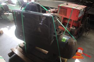 AIR COMPRESSOR AND RESERVOIR, MAKE: PILOT, MODEL: K25, ADVISED DOM: 2008, ELECTRIC 3 PHASE, APPROX WEIGHT: 150KG, CONDITION: UNTESTED, NOTE: BROKEN PULLEYS