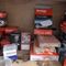 PALLET OF ASSORTED 4.5-9KG POWDER FIRE EXTINGUISHERS, 3 X VEHICLE FIRE EXTINGUISHER BRACKETS AND METAL FILING CABINET