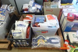 - SUNDRY ITEMS INCLUDING LARGE QTY OF ASSORTED PPE (MACK STEEL CAP BOOTS, FLURO SHIRTS, SUN HATS & WORK PANTS), FIRST AID SUPPLIES (FIRST AID KITS, DEFIBRILLATOR), 2 x COMMERCIAL MARQUEES (7x15m & 6x12m), BLENDORAMA PAINT TINTING MACHINE, GALVANISED RAILING STANCHIONS, LG 4-DOOR FRIDGE/FREEZER, SEWING & EMBROIDERY MACHINES, MANNEQUINS, BOHEMIA CONTI CC100 COFFEE MACHINE, OFFICE FURNITURE & MORE