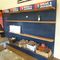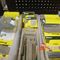 1 X PALLET OF METAL STORAGE SHELVES, BRACKETS AND BACKBOARD (YELLOW). NO FRAME. 4 X SHELVES (1200 X 360MM) WITH ADJUSTABLE DIVIDERS, 4 X PLAIN SHELVES (1210 X 650MM), 6 X BACK BOARDS (1210 X 650MM)