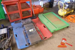 3 X LOW PROFILE MECHANICS CREEPERS (2 X PLASTIC LISLE JEEPER CREEPERS), 1 X MOBILE TIDY TRAY (GREEN) APPROX 720 X 920MM
