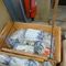 APPROX 11 X NEW AND USED JARVIS WALKER 8FT FISHING RODS AND REELS IN TUB AND 4 X CRAB DROP NETS