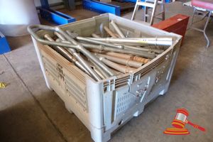 1 X TUB OF APPROX 50 X ALUMINIUM AND GALVANISED (4) STANCHIONS AND CURVED HANDRAIL SECTIONS. HEIGHT 1200MM. TUB INCLUDED