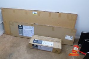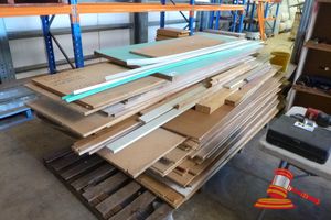 QTY OF ASSORTED TIMBER INCLUDING CHIPOARD, TIMBER, MDF AND PLY SHEETS (ASSORTED WIDTHS - LENGTHS UPTO 3M, BOARD ROOM TABLE TOP, OFFICE PARTITIONING, 6 X ALUMINIUM FLY WIRE SCREENS (800 X 2050MM), MIRROR (500 X 1600MM)