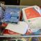 1 X TUB AND 1 X PALLET OF SHELVING ACESSORIES INCLUDING POLE PROTECTION BARRIERS