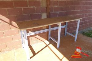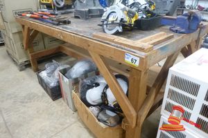 LARGE TIMBER WORK BENCH WITH VICE. 2350 X 1250 X H1010MM