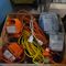 CRATE OF ASSORTED EXTENSION LEADS, 2 X HPM ELECTRO SAFE POWER CENTRE ADAPTORS WITH RCD PROTECTION, 30M BNC CABLE