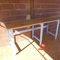 2 X BRICKIES WHEEL BARROWS WITH METAL TUBS (FAIR CONDITION) AND 4 X TABLE LEGS