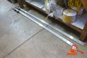 GALVANISED STAIR SECTION WITH PRE FABRICATED ALUMINIUM HAND RAIL (H1200MM). APPROX LENGTH 5500MM X WIDTH 1010MM. STAIRS CAN BE SEPERATED IN HALF (BOLTED TOGETHER). ALSO INCLUDES 9 X 50 X 50 50 X H2050MM POSTS TO SUIT WIRE RAILING