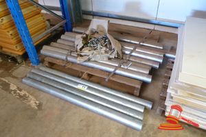 PALLET OF 14 X GALVANISED PIPE (UNUSED). LENGTH 1340MM X DIAM 75MM, QTY OF BRACKETS AND PALLET OF ASSORTED GALVANISED C CHANNEL COVERS. LENGTH 1200MM