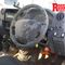 (REPORTED AS BROKEN STEER ARM - HELD BY CABLE TIE, STEERING WHEEL WORN, NO COVER TO REAR TYRE, RHF TYRE ASSEMBLY DAMAGE)